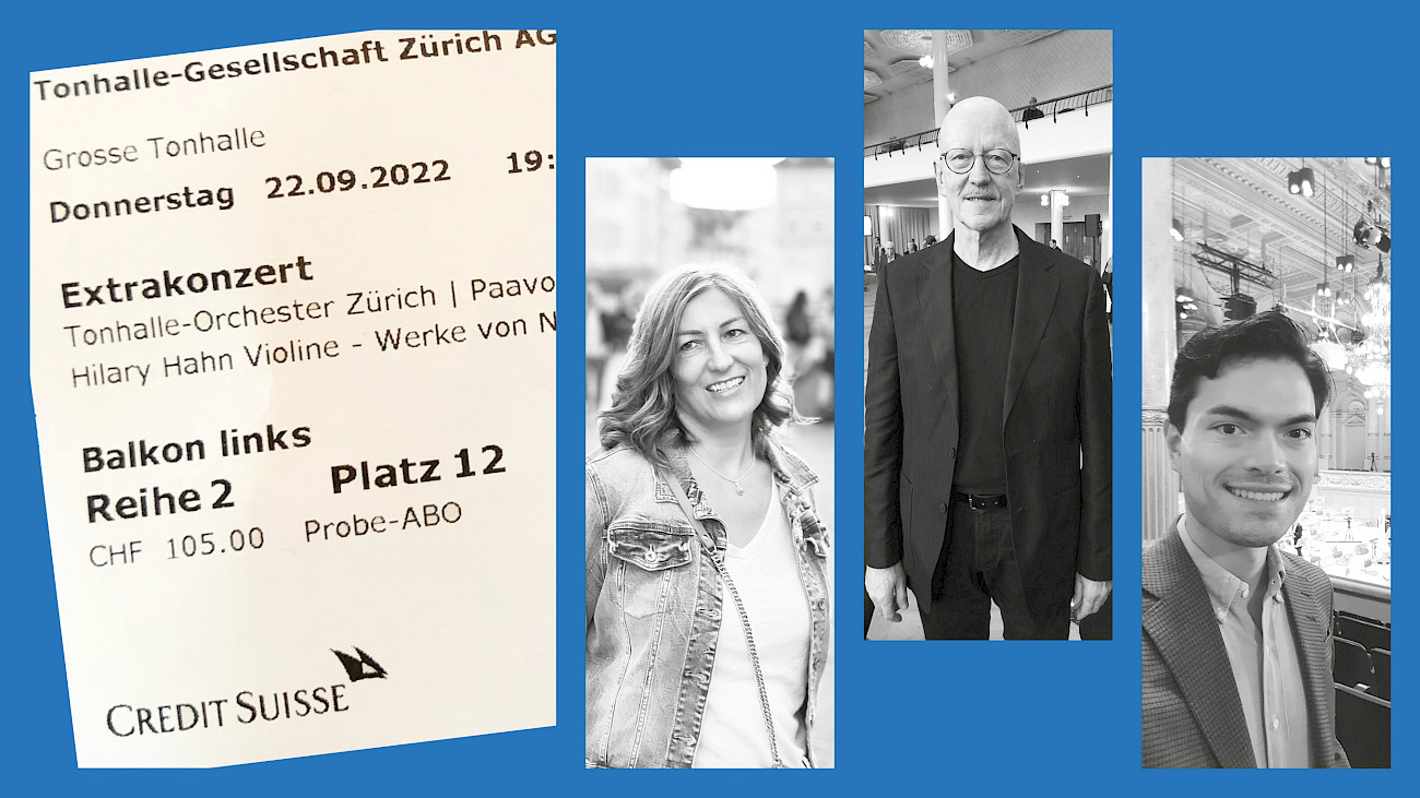 Letzte Woche begann für 566 Probe-Abonnent*innen die Saison in der Tonhalle Zürich. Wir haben drei von ihnen befragt.