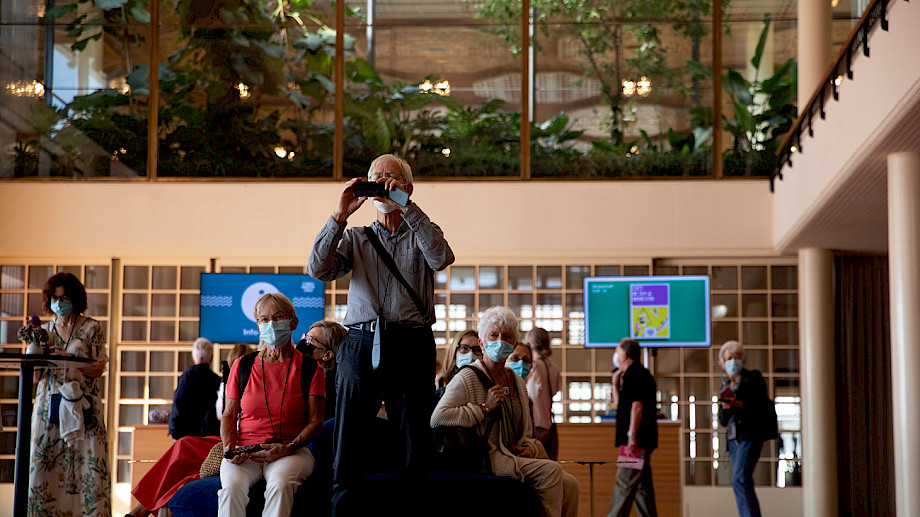In einem Rundgang entlang des pinken Teppichs durften die Besucher*innen coronakonform selbstständig die Räumlichkeiten von Tonhalle und Kongresshaus Zürich erkunden. Mittels QR-Code aufrufbare Audioguides führten die Besucher*innen zurück in die Entstehungszeit der Tonhalle, gaben Einblick in die aufwändigen Renovationsarbeiten der letzten vier Jahre und lieferten spannende Hintergrundinformationen zu den Betrieben von Kongresshaus und Tonhalle Zürich.