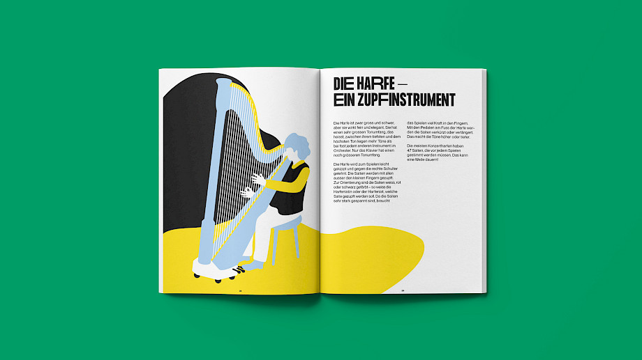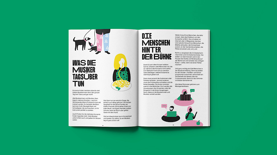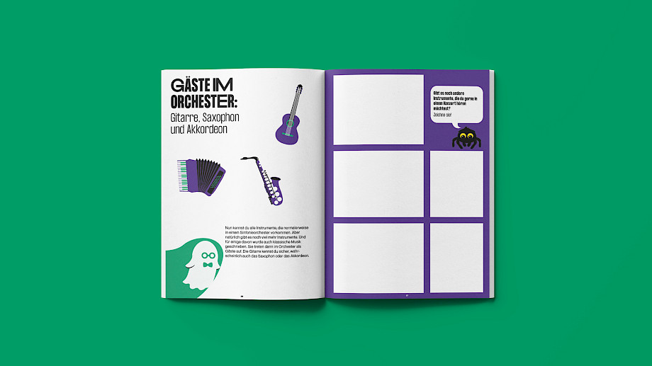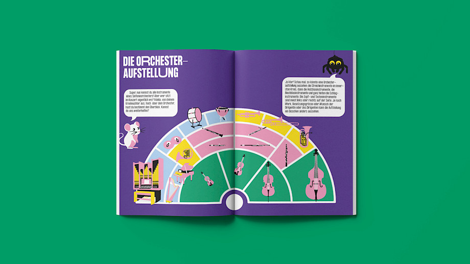 The sticker booklet "Sit in the orchestra!" explains the history of the symphony orchestra to children aged 6 to 9, what the musicians do in the orchestra and what instruments there are.