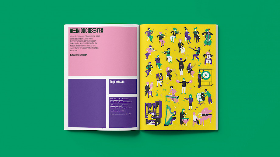 Das Stickerheft «Setz dich ins Orchester!» erklärt Kindern im Alter von 6 bis 9 Jahren die Geschichte des Sinfonieorchesters.