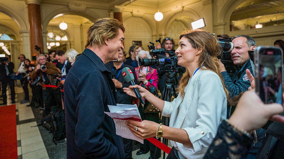 SRF-Direktorin Nathalie Wappler hat unser Orchester mit einer berührenden Laudatio geehrt und den Preis übergeben, der uns sehr freut. Paavo Järvi verdeutlichte in seinen Worten den Geist des Abends angesichts der vielfältigen Krisen auf der Welt: «Ein Sinfonieorchester ist ein gutes Beispiel, wie wir unsere Gesellschaft modellieren könnten: Hier sind dutzende Nationalitäten vertreten, hoch talentiert, professionell und voller Respekt. Nie ist es für mich als Esten wichtiger gewesen als in diesen Zeiten, ein Europäer zu sein.»