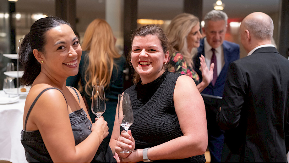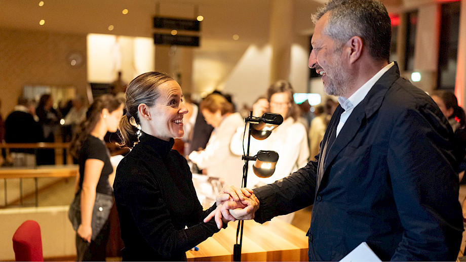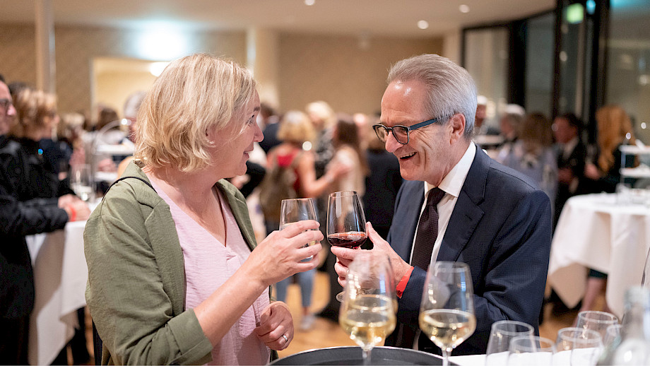 Entsprechend der Tradition gab es auch nach diesem Saisoneröffnungskonzert einen Schlummertrunk. Wobei es eher ein Feiertrunk war: Das Publikum wirkte jedenfalls keineswegs müde – sondern diskutierte angeregt über das Gehörte und allerlei sonst.